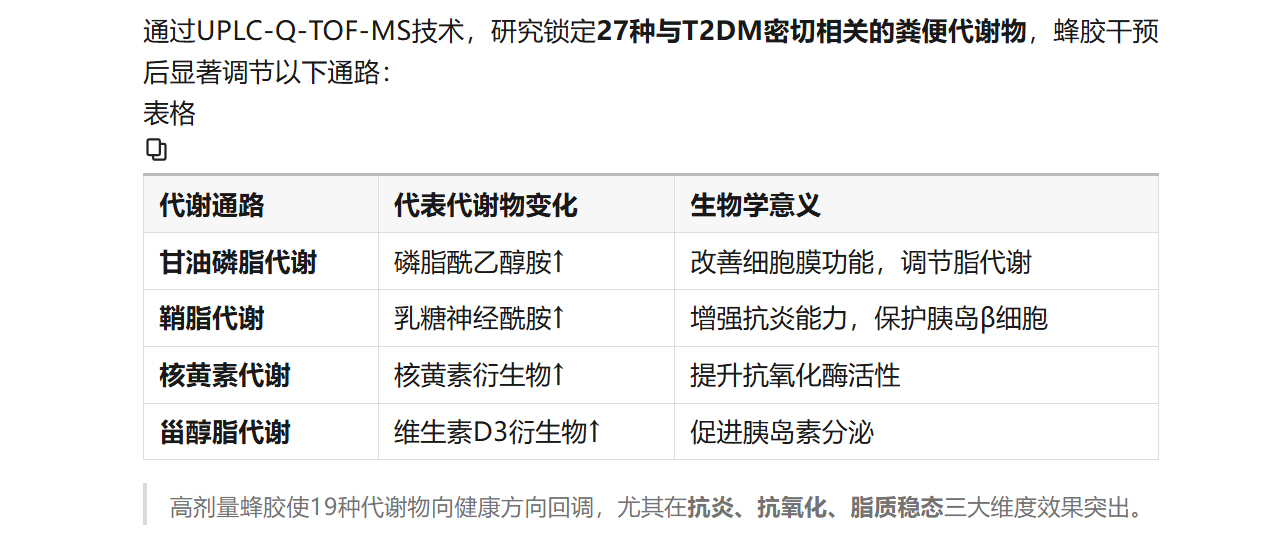 【科研速遞】蜂膠乙醇提取物如何“修復”糖尿病?糞便代謝組學揭開關鍵機制!